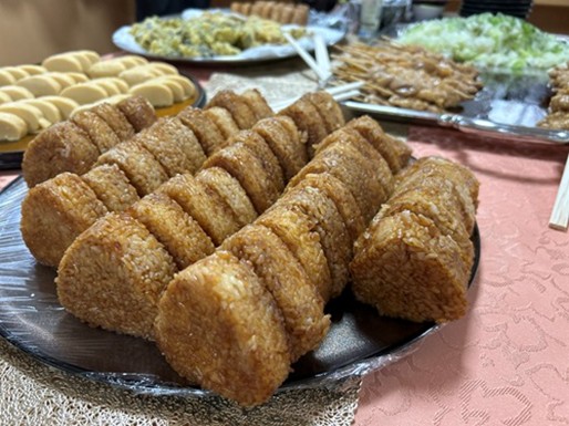 お料理は、焼きおにぎり・天ぷら・焼き鳥・冷ややっこ・塩だれキャベツ・だし巻き卵。