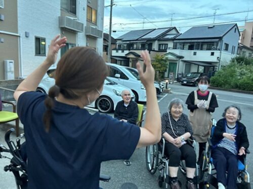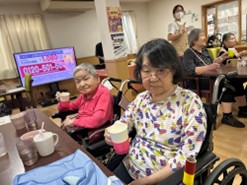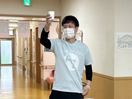 居酒屋レク、はじまりの合図として職員が乾杯の音頭を取らせていただきます。