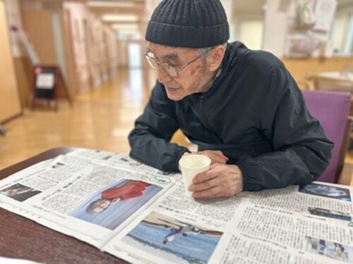こちらの方は、ジュース片手に新聞を読まれております(*´▽`*)