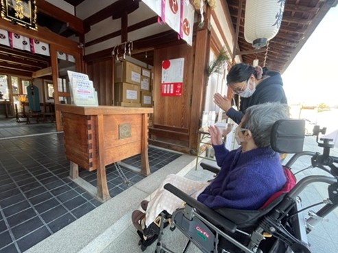 お賽銭を入れた後、手を合わせる練習もしました(*´▽`*)