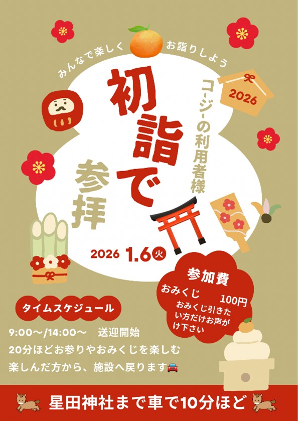 「初詣行きますよ~!」と上記のチラシとともにお声掛けをすると