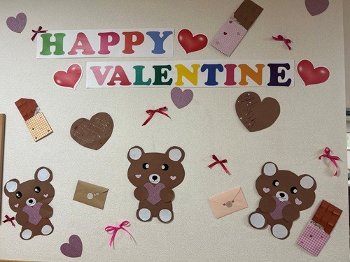 壁にはかわいいクマちゃんやチョコレートを飾り準備万端です♪