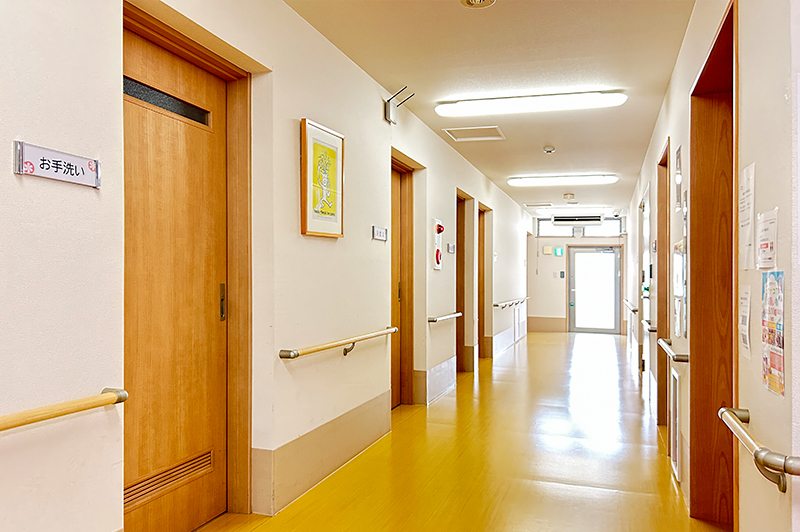 敷地は平坦に整えられており勾配も少ないため、車椅子での移動もスムーズです。館内は安全性を重視したバリアフリー設計となっており、各所に十分な幅とゆとりを確保しています。